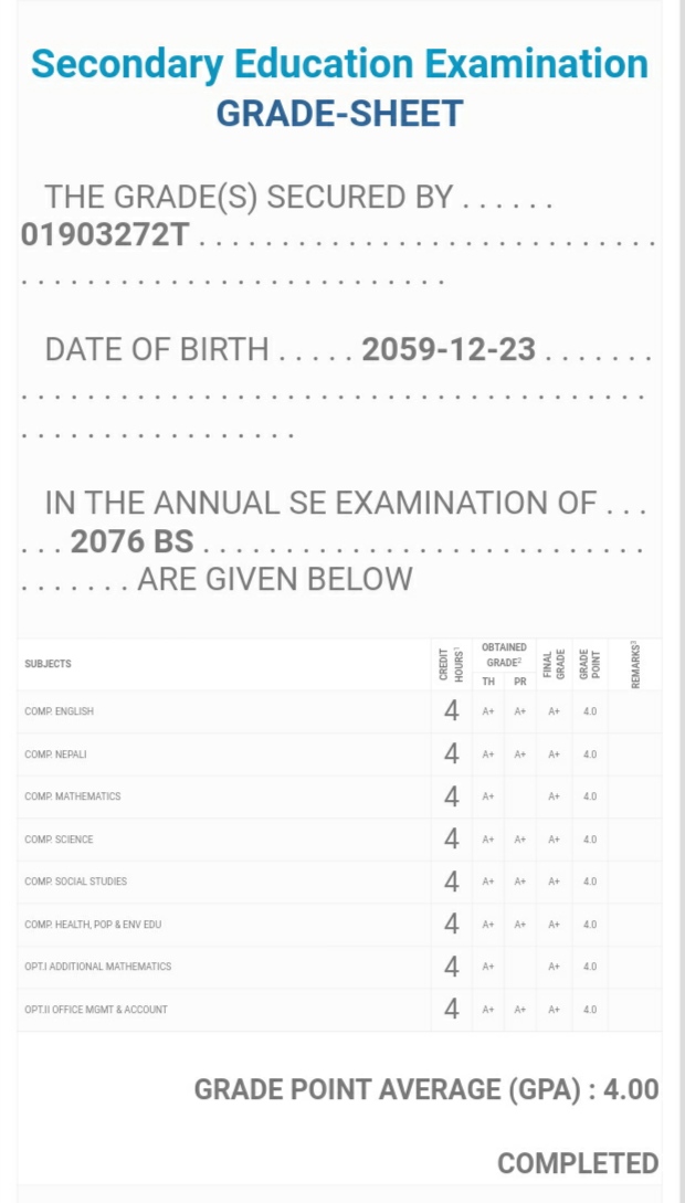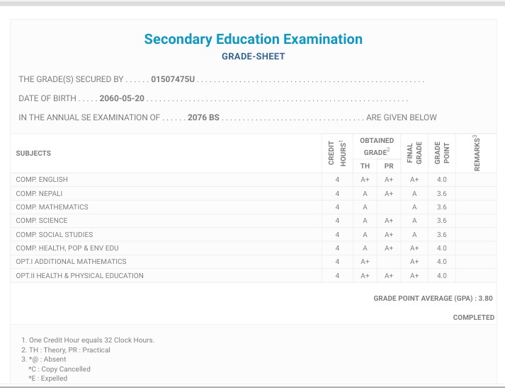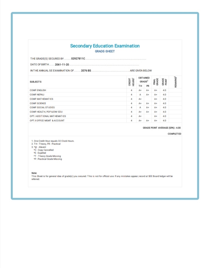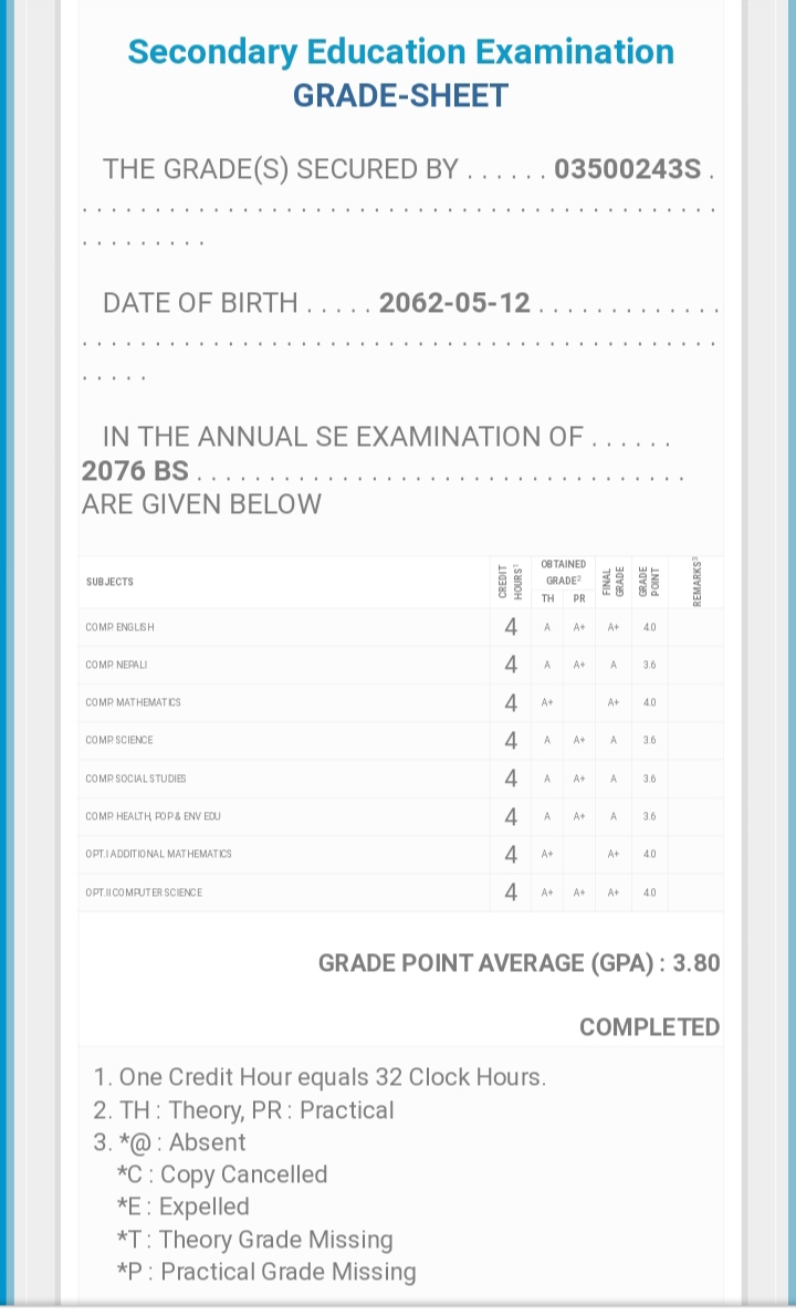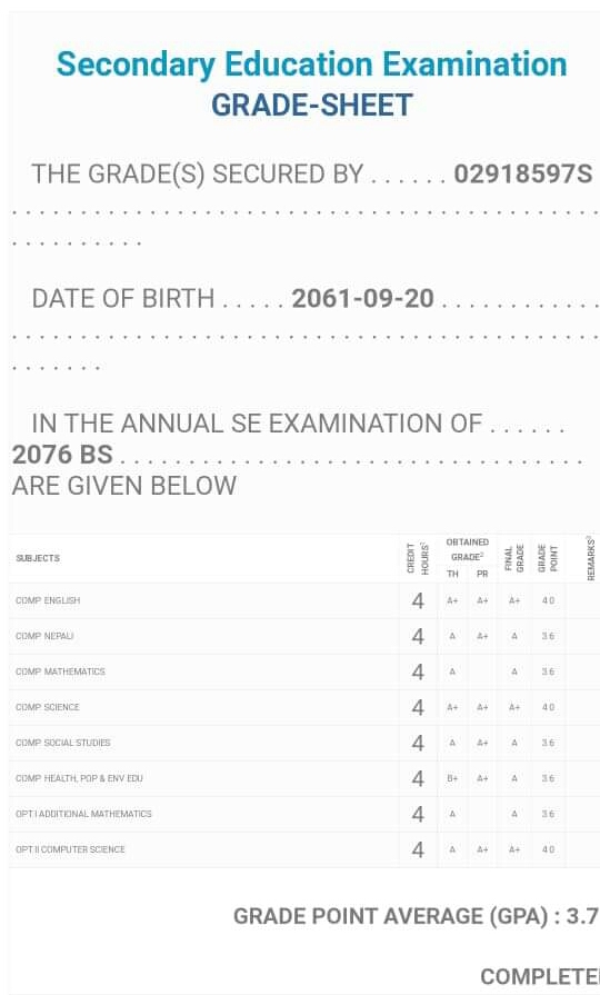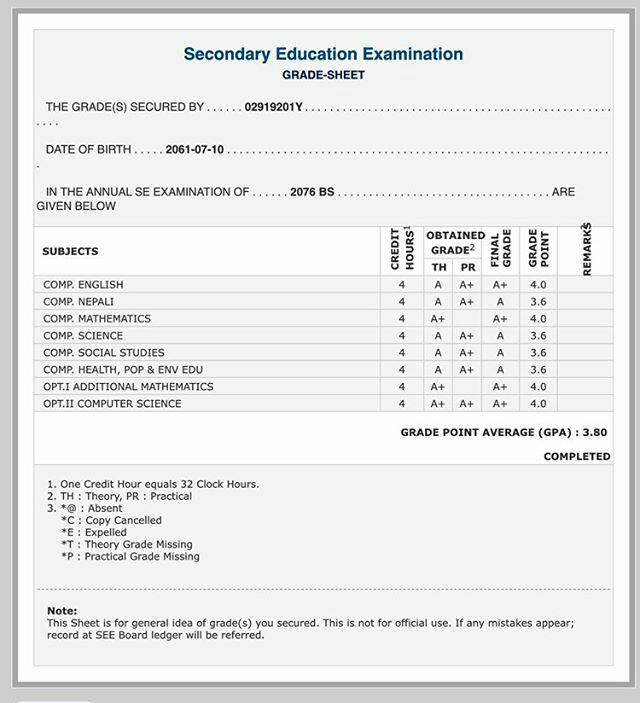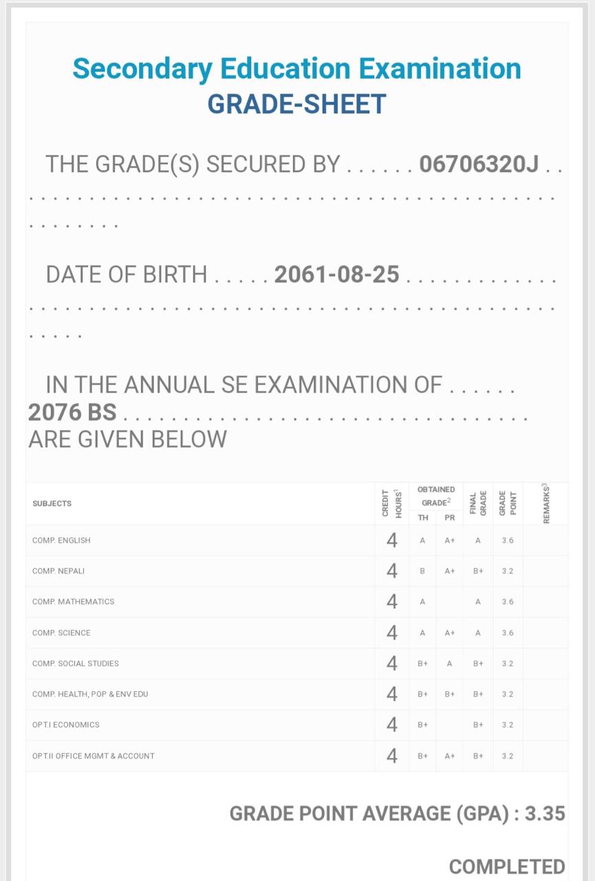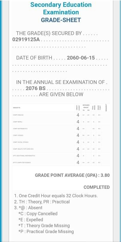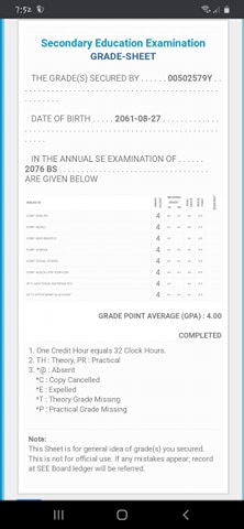 8/26/2020 5:50 PM 159126 Grade sheet SEE [Ritika].jpg-0.jpeg