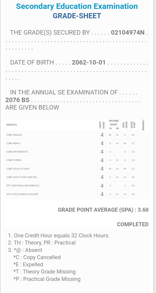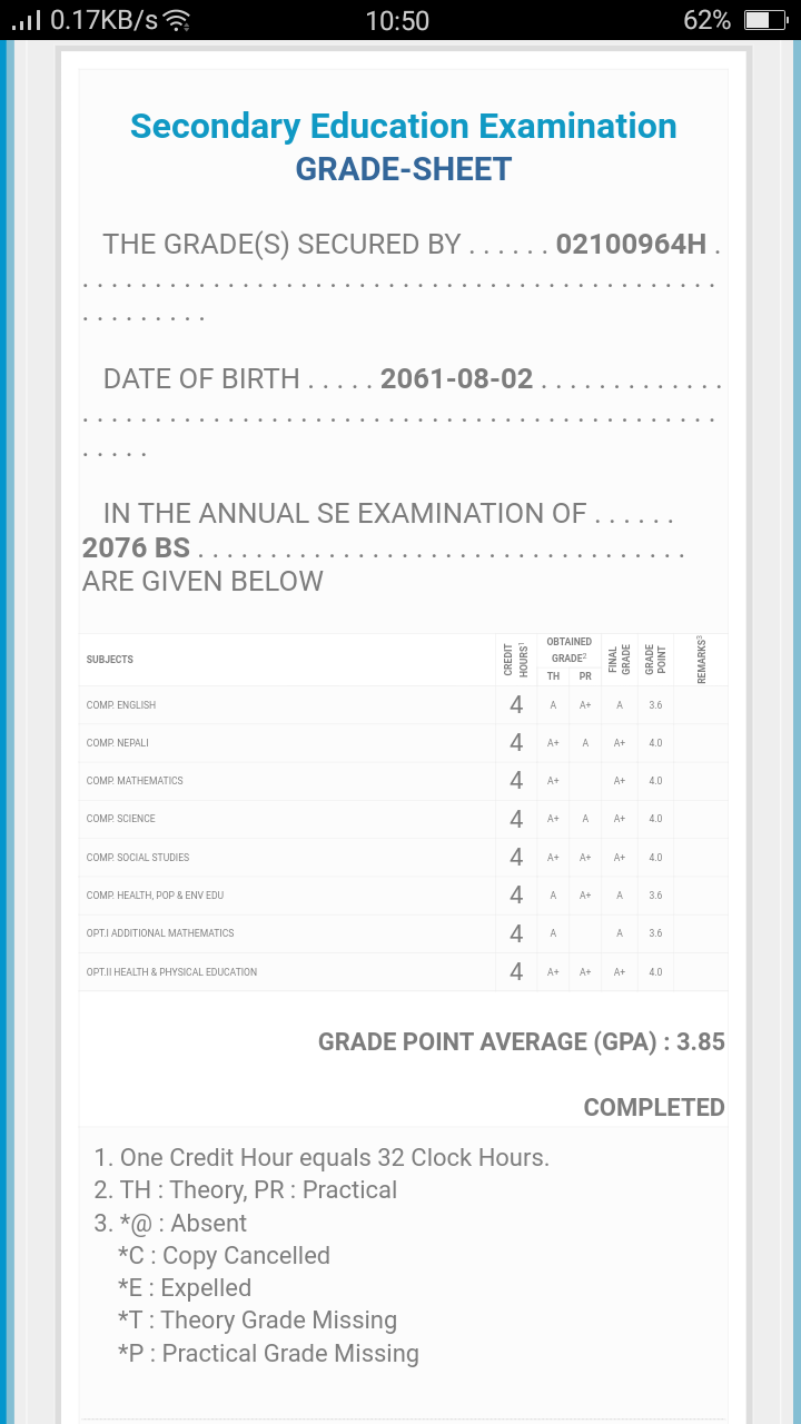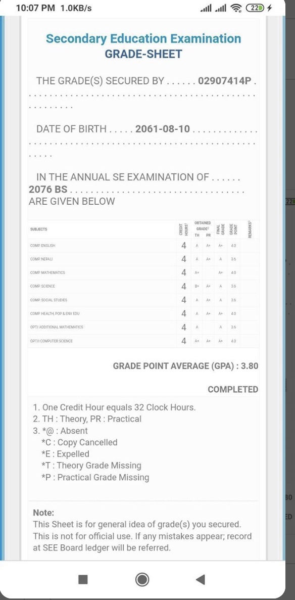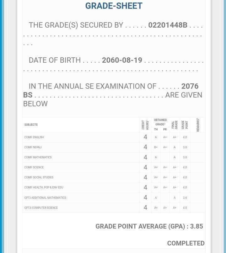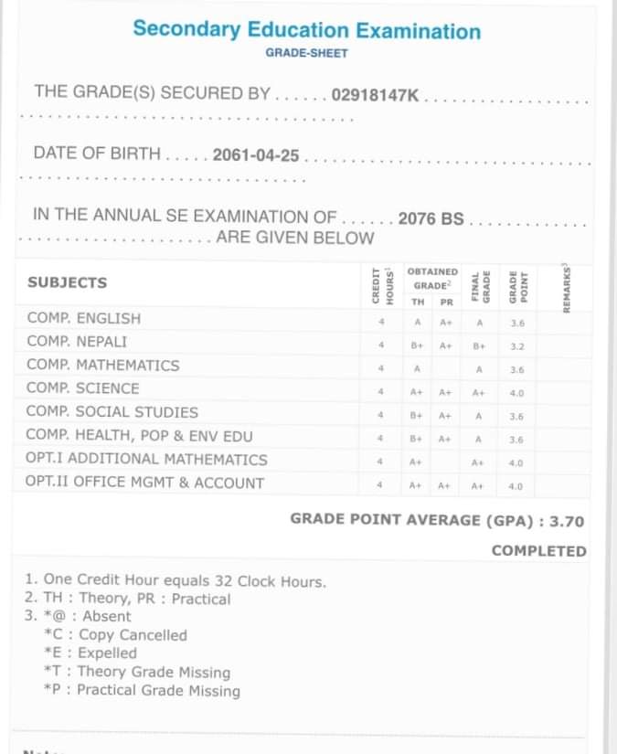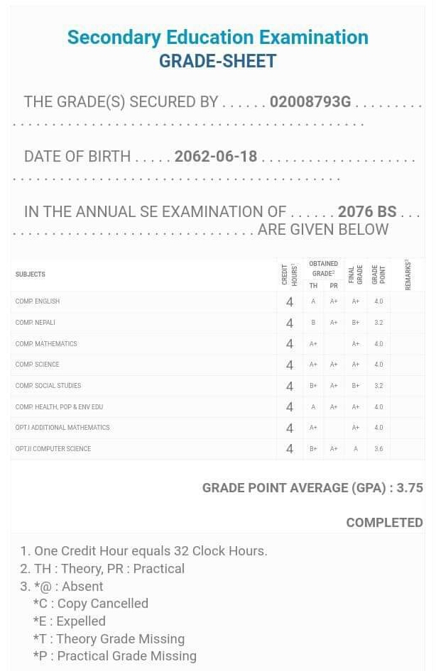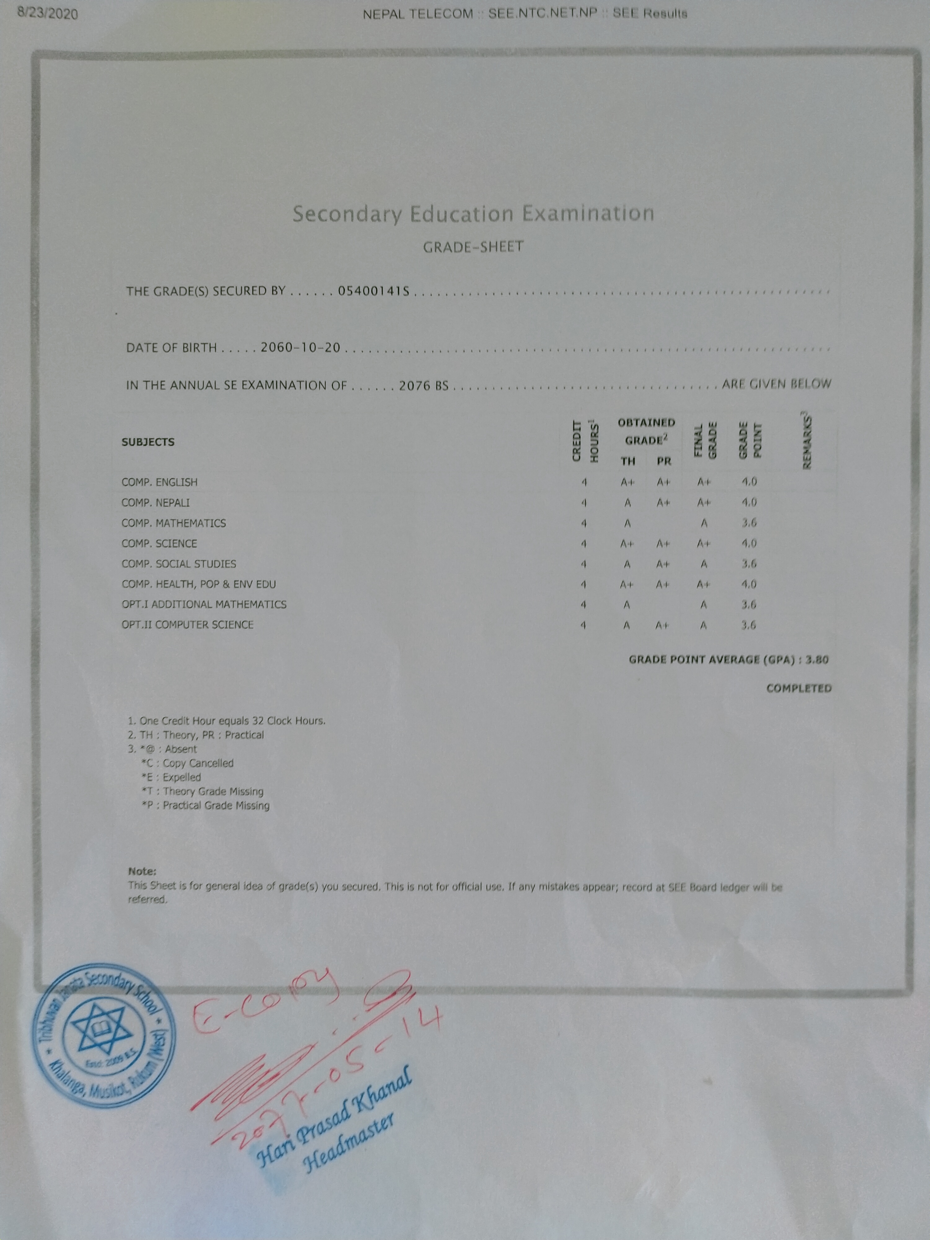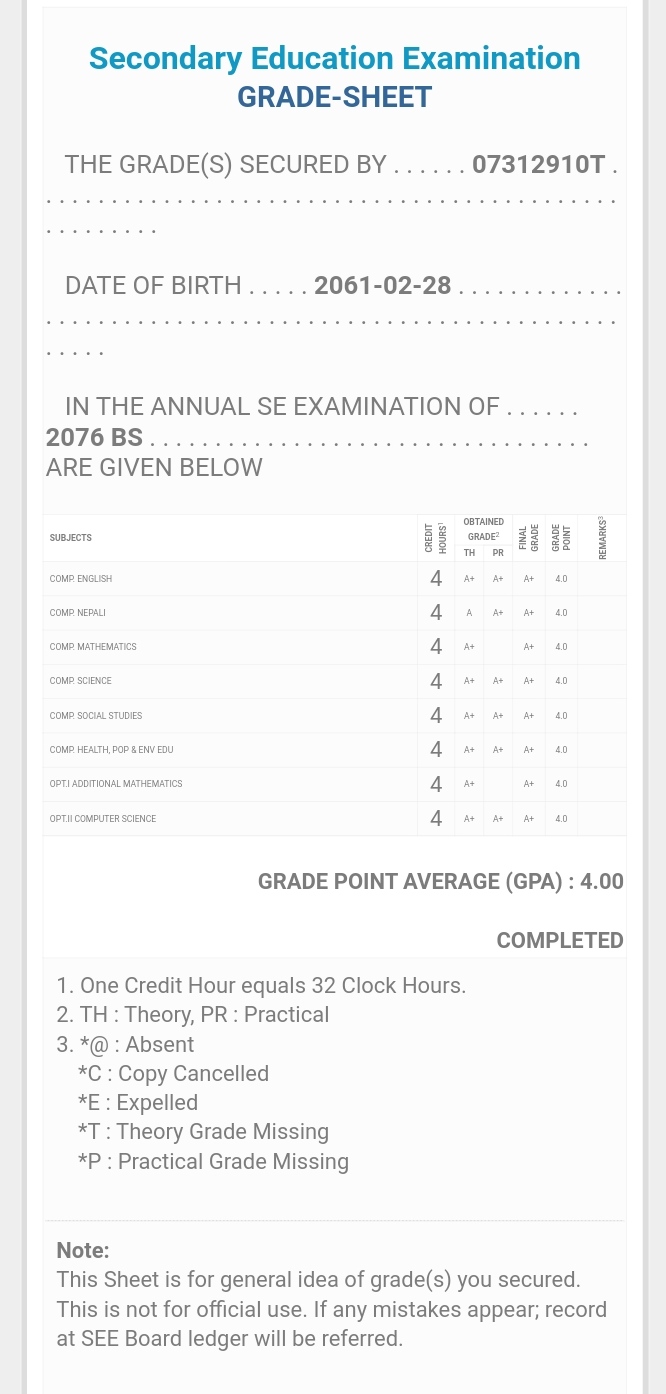 8/26/2020 5:50 PM 159126 Grade sheet SEE [Ritika].jpg-0.jpeg