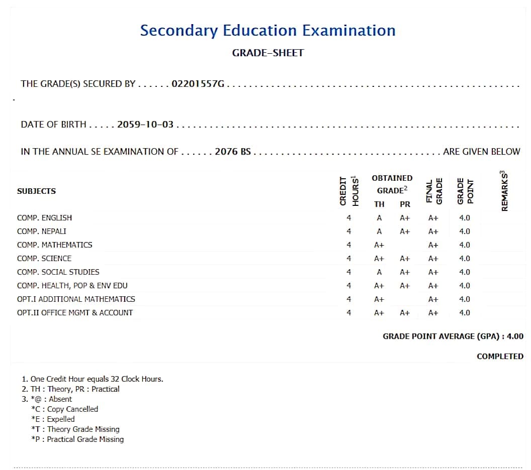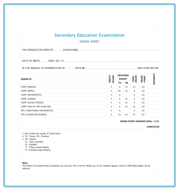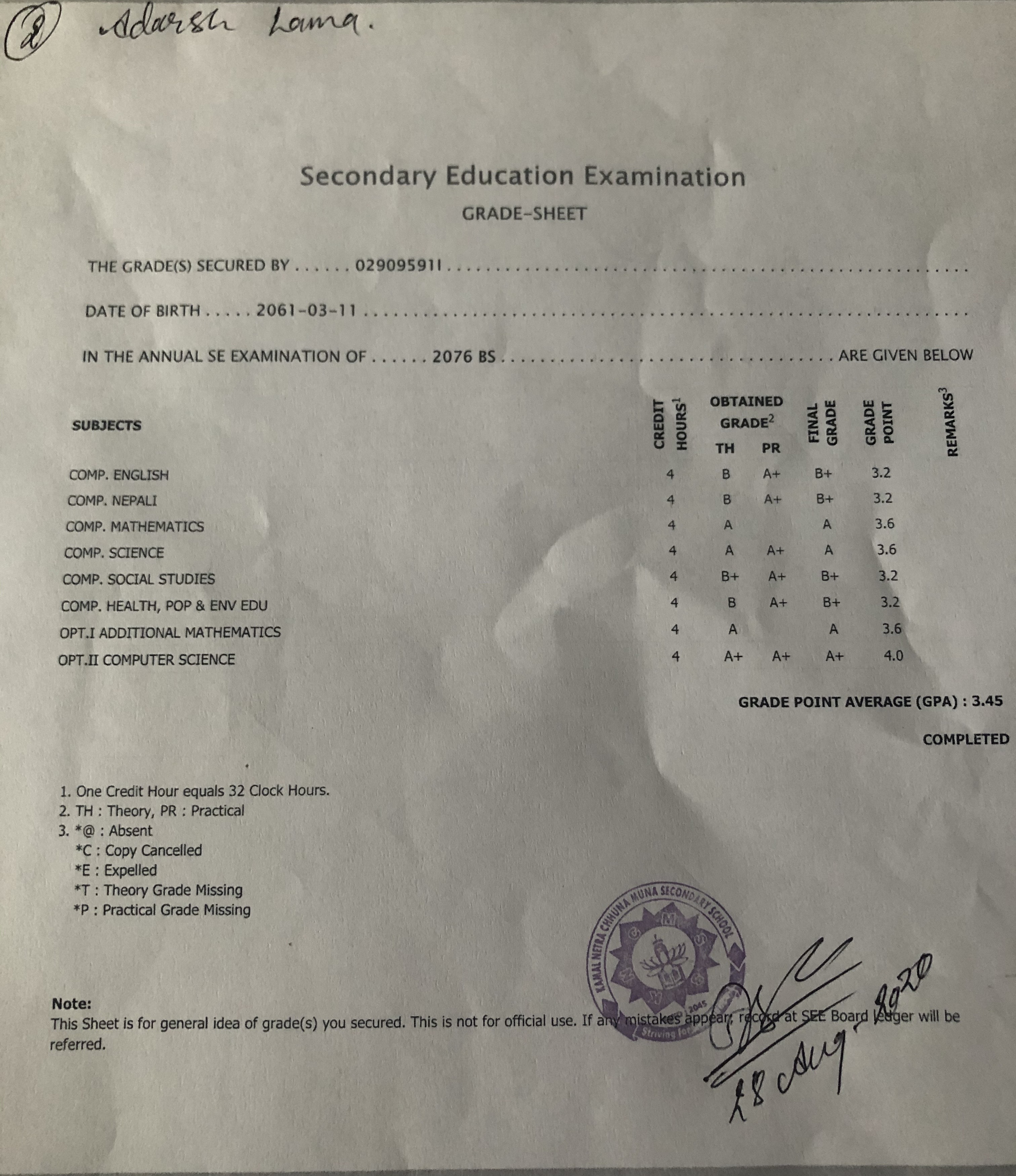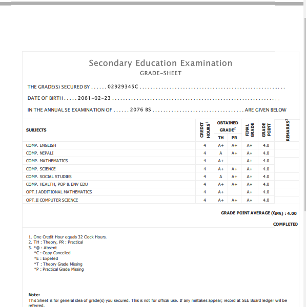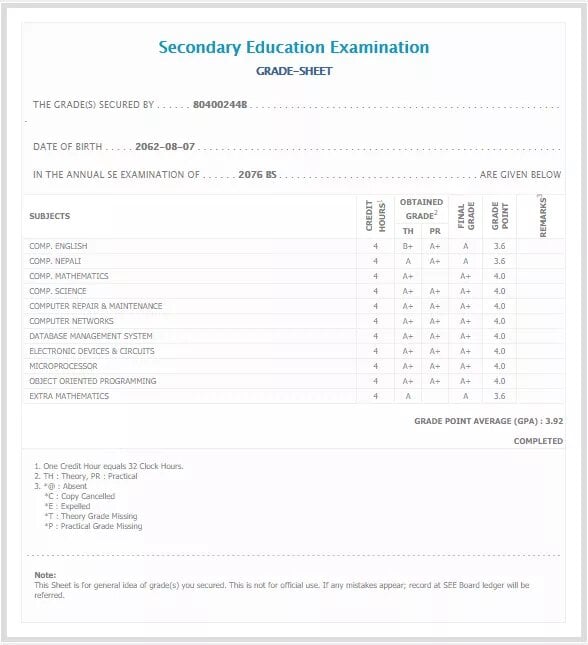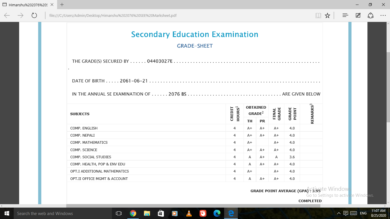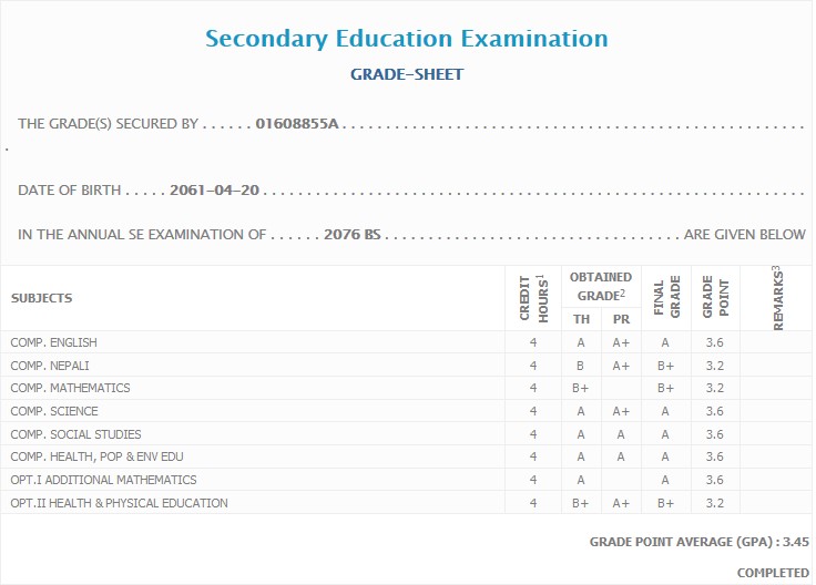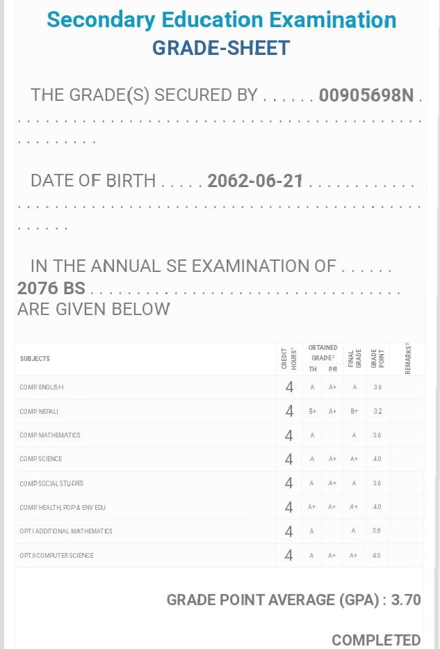 8/26/2020 5:50 PM 159126 Grade sheet SEE [Ritika].jpg-0.jpeg