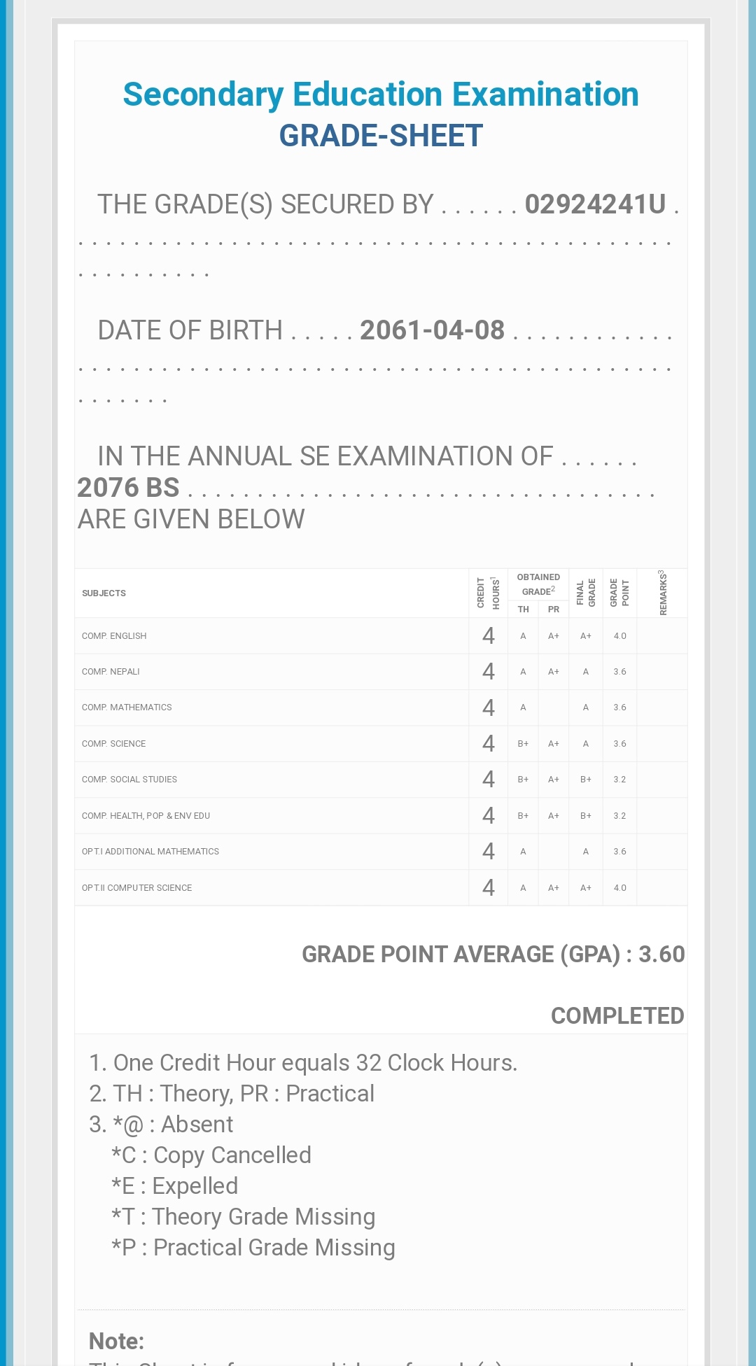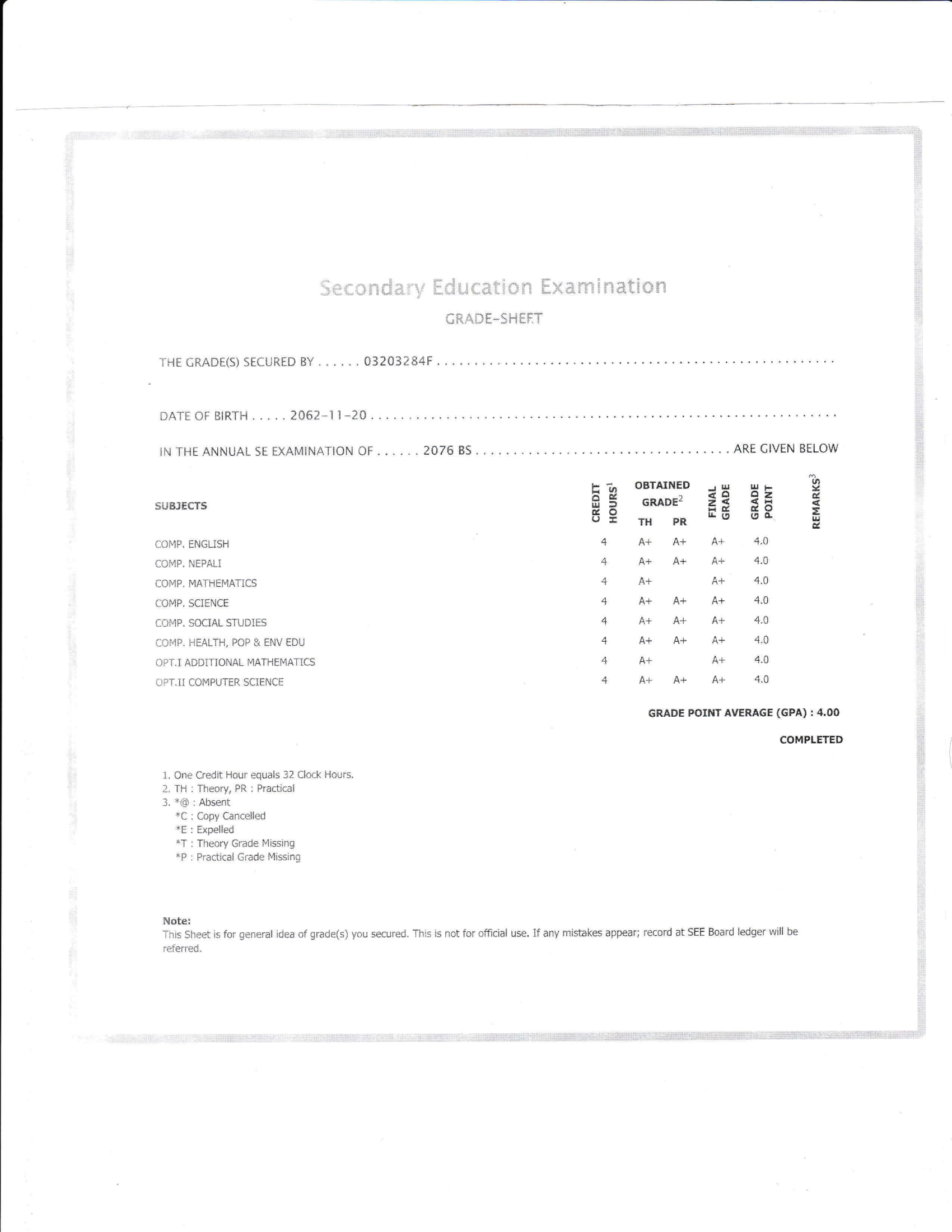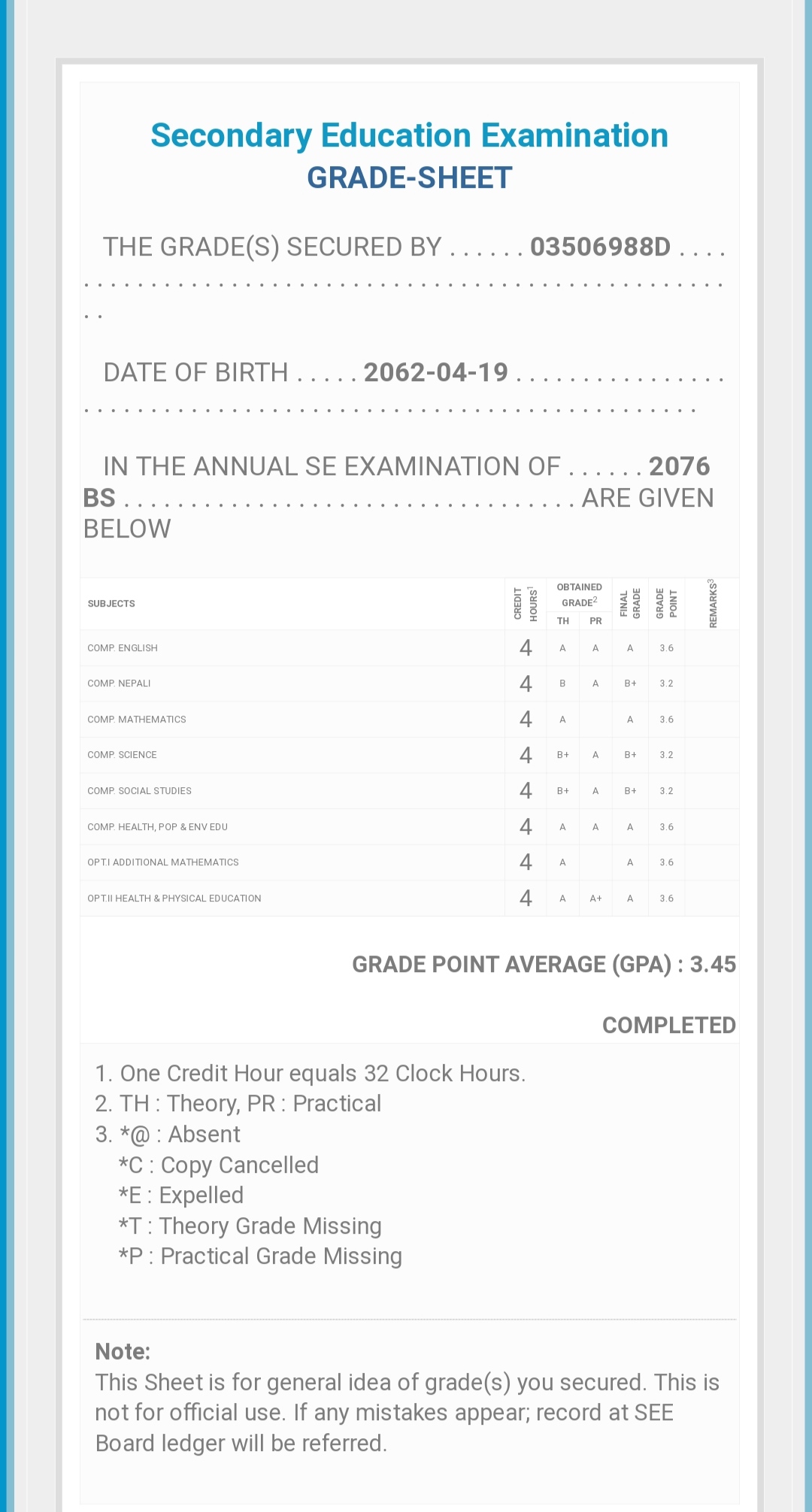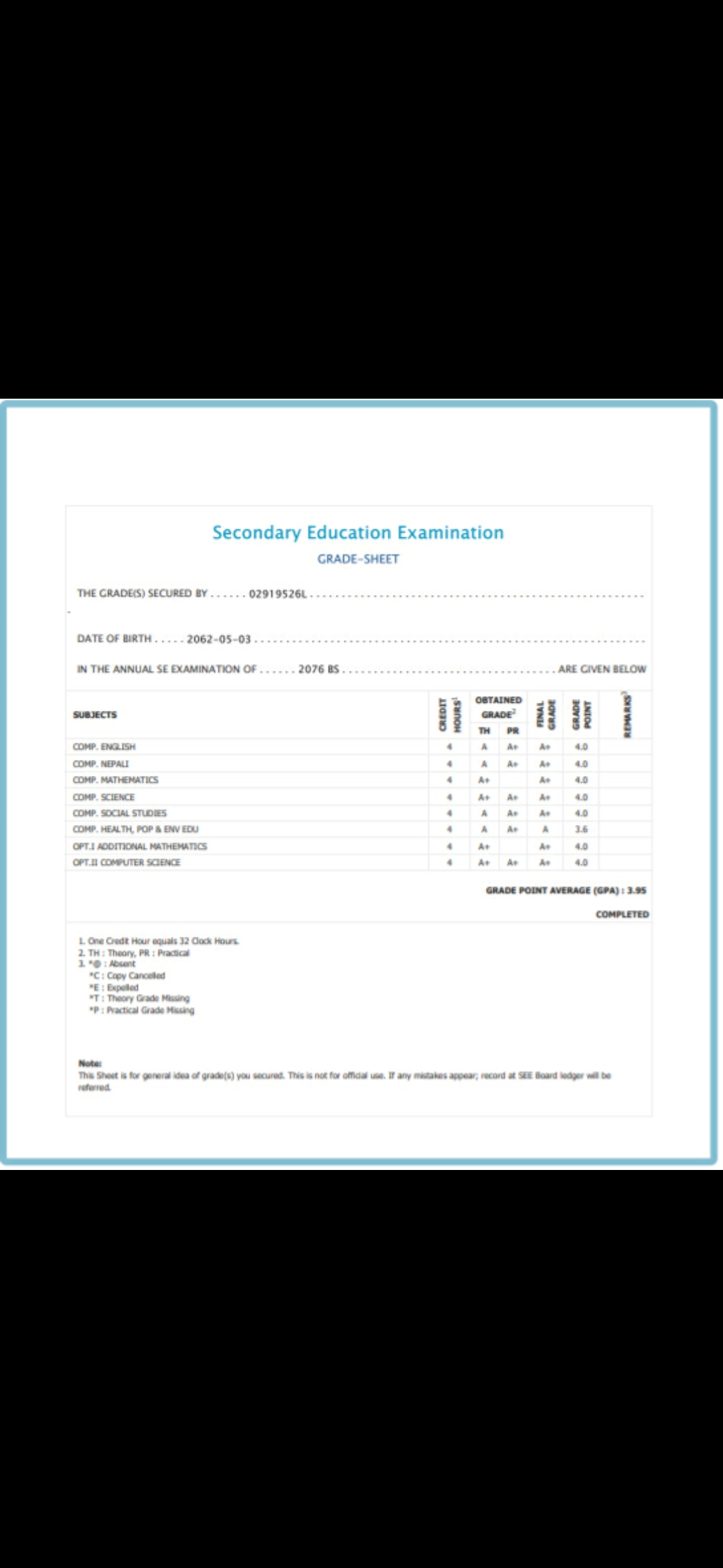 8/26/2020 5:50 PM 159126 Grade sheet SEE [Ritika].jpg-0.jpeg