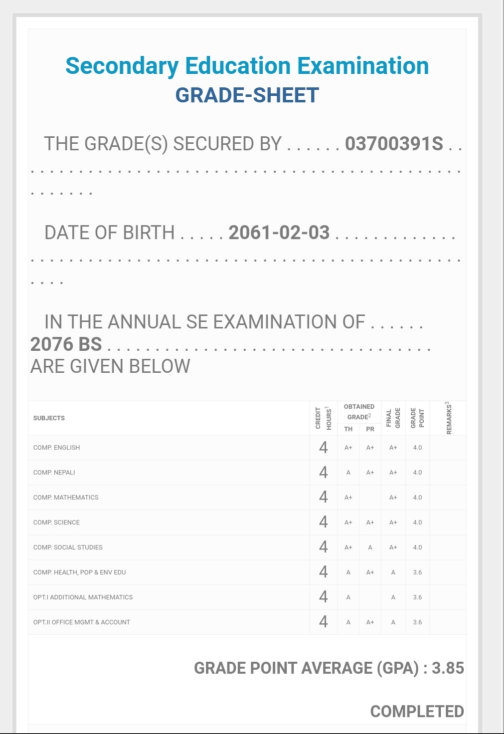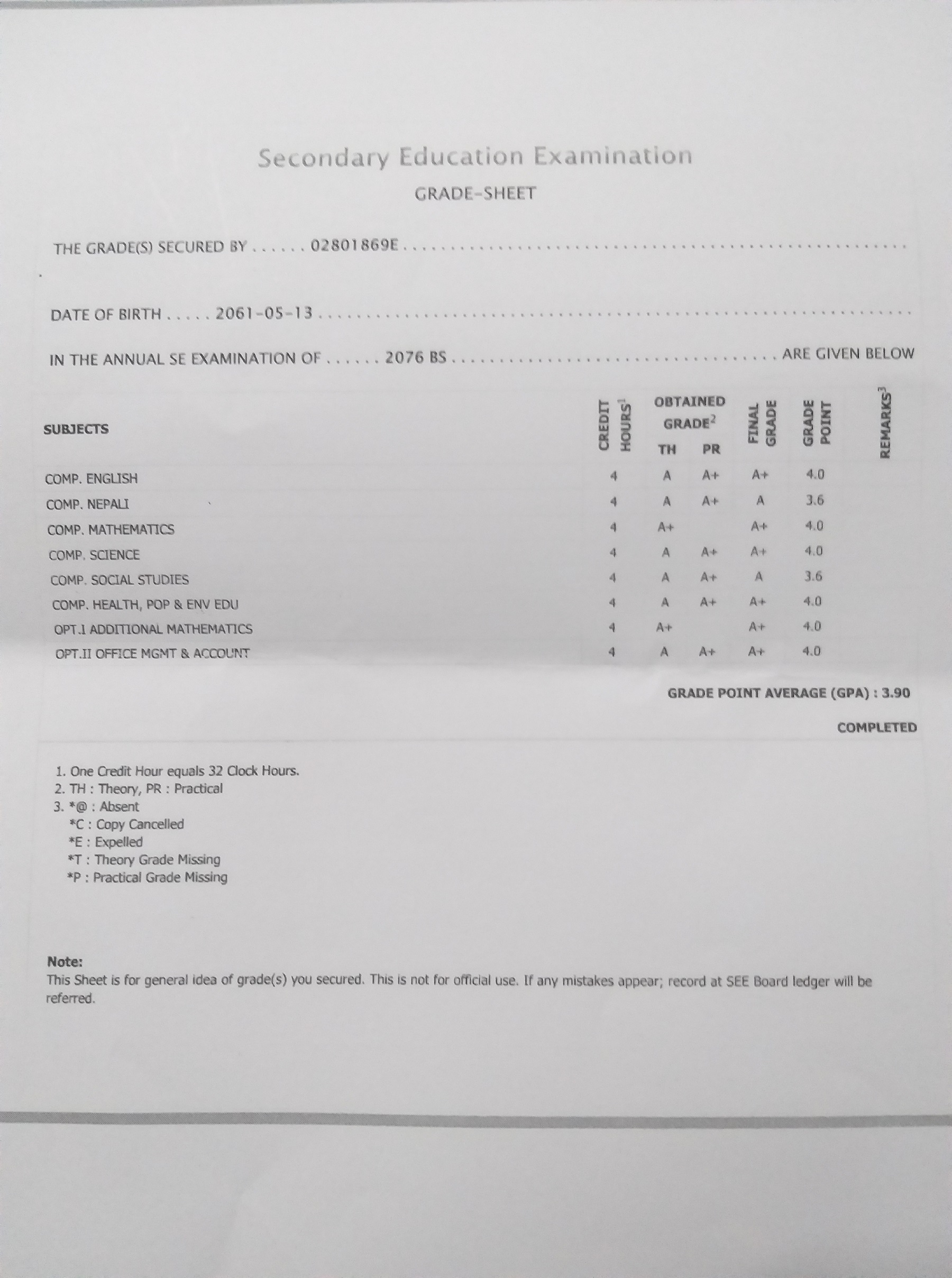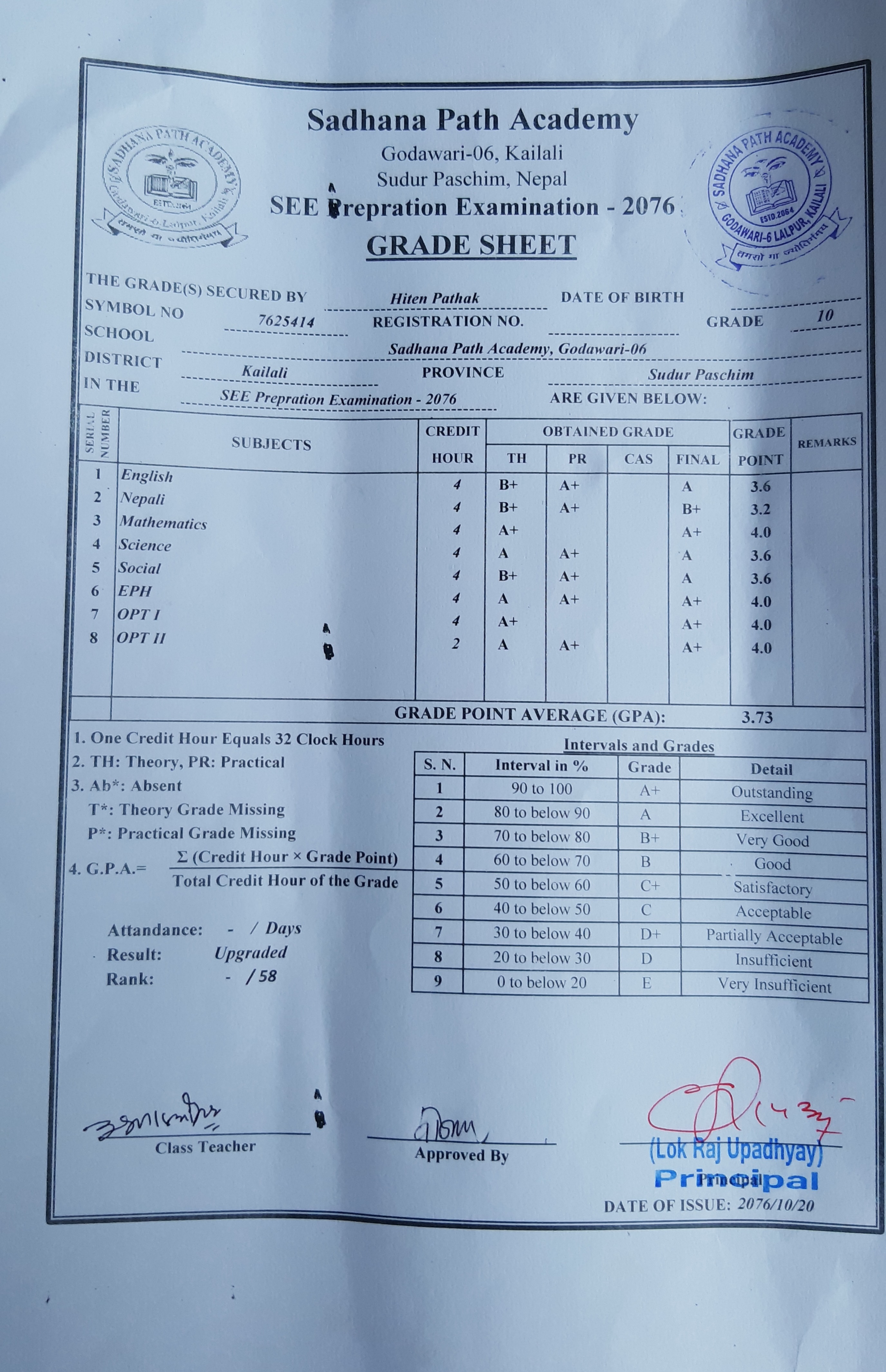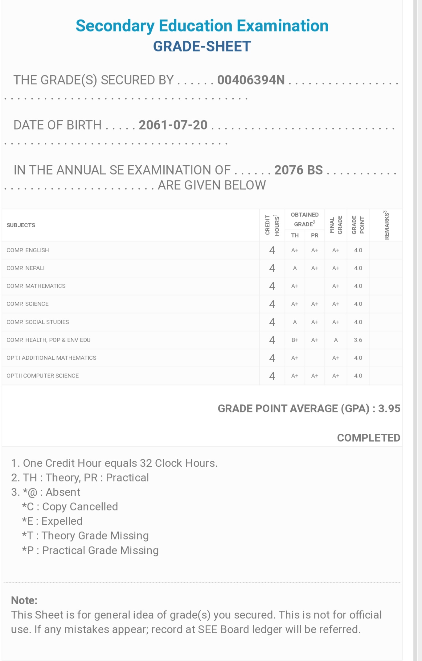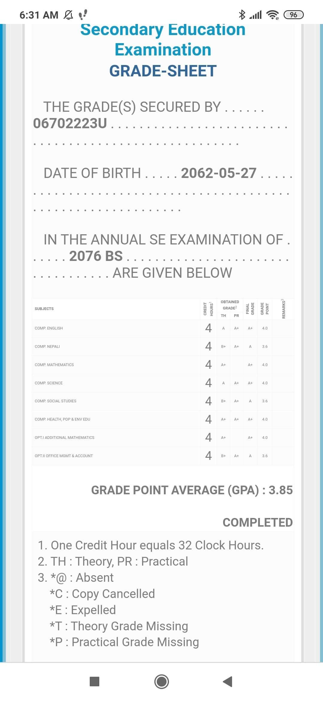 8/26/2020 5:50 PM 159126 Grade sheet SEE [Ritika].jpg-0.jpeg