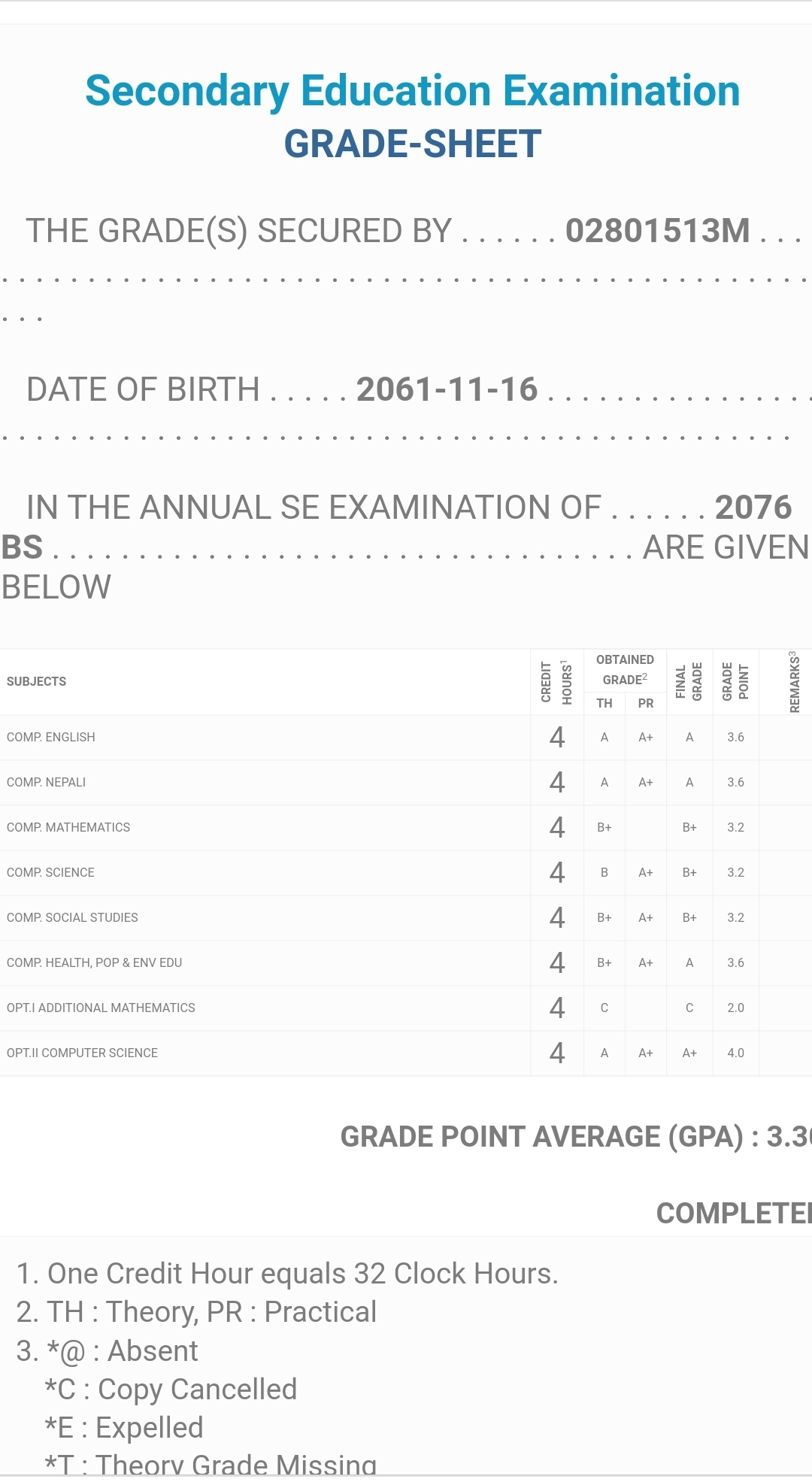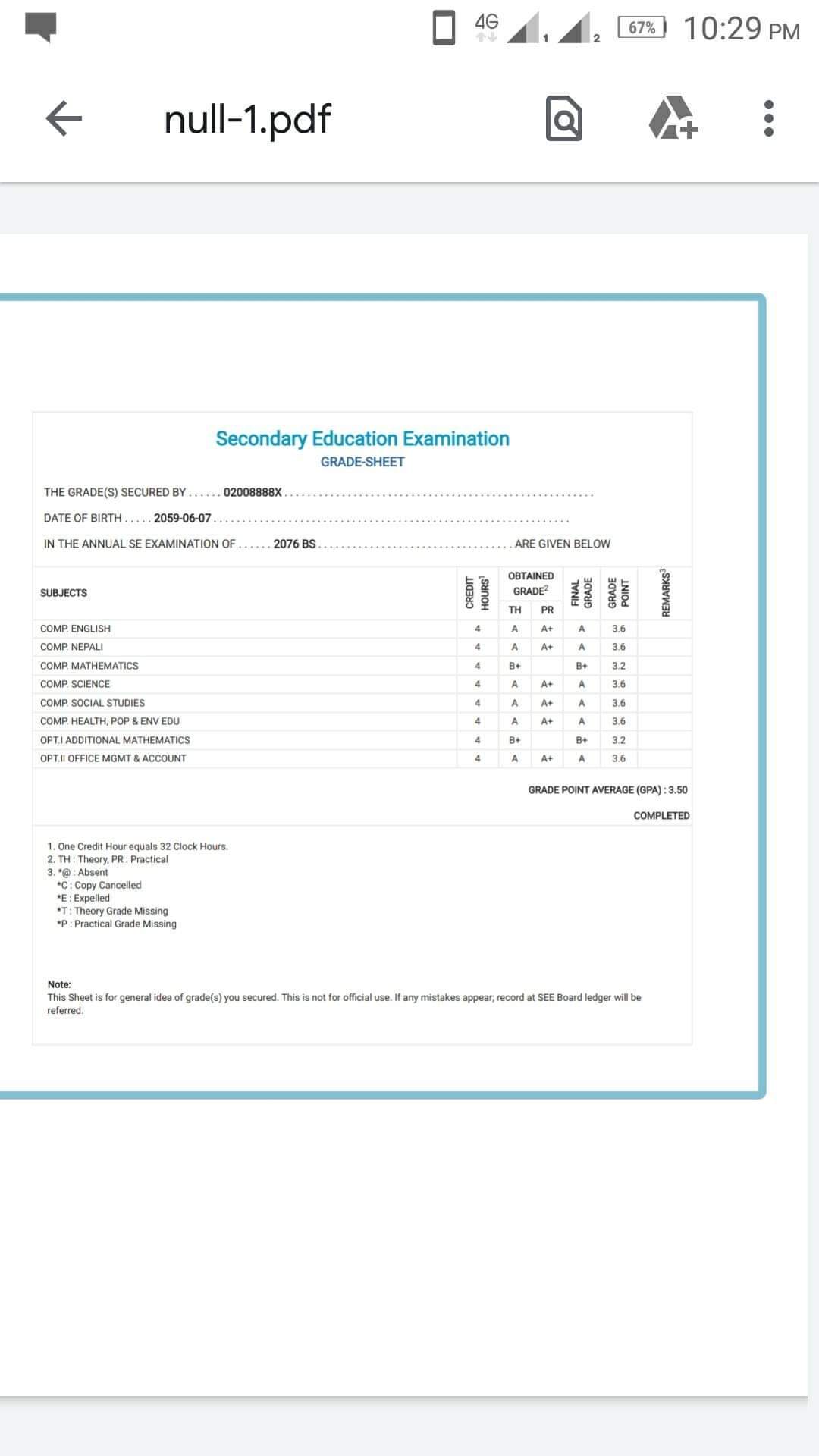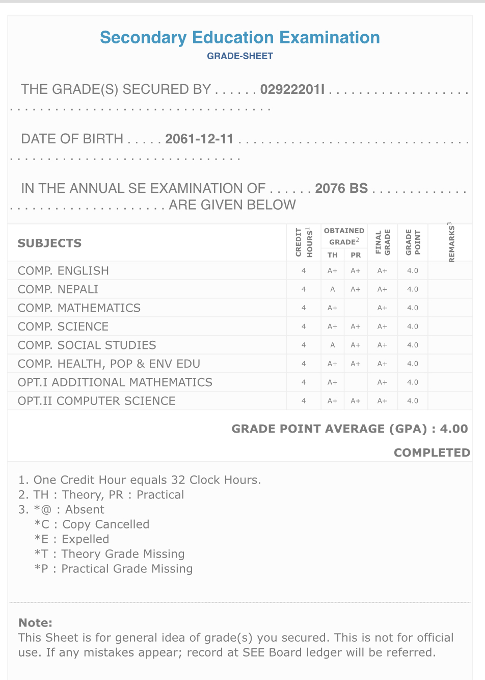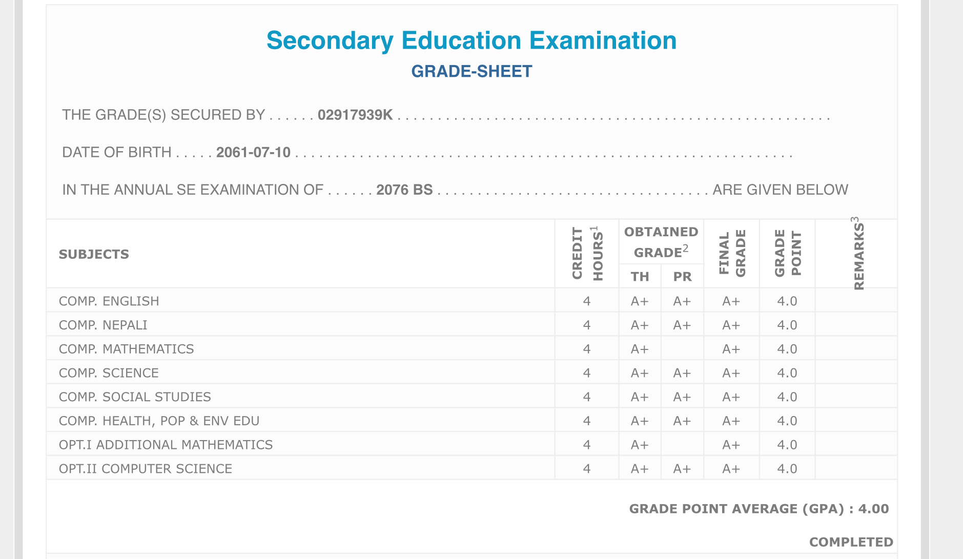 8/26/2020 5:50 PM 159126 Grade sheet SEE [Ritika].jpg-0.jpeg