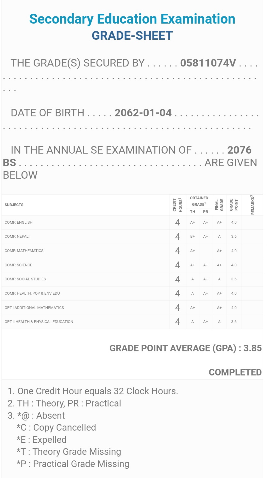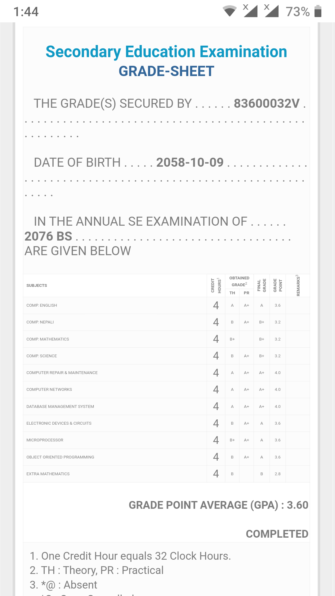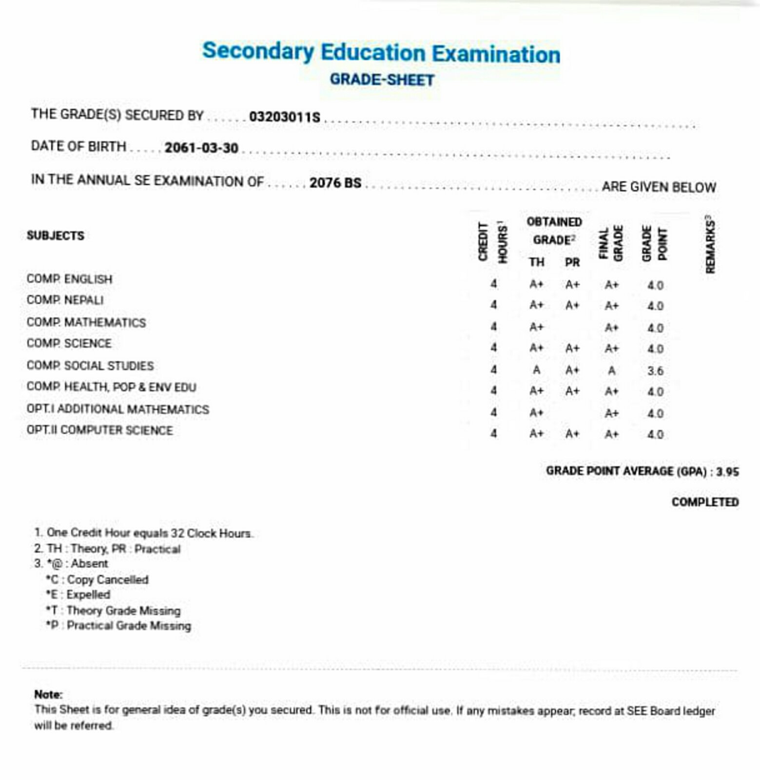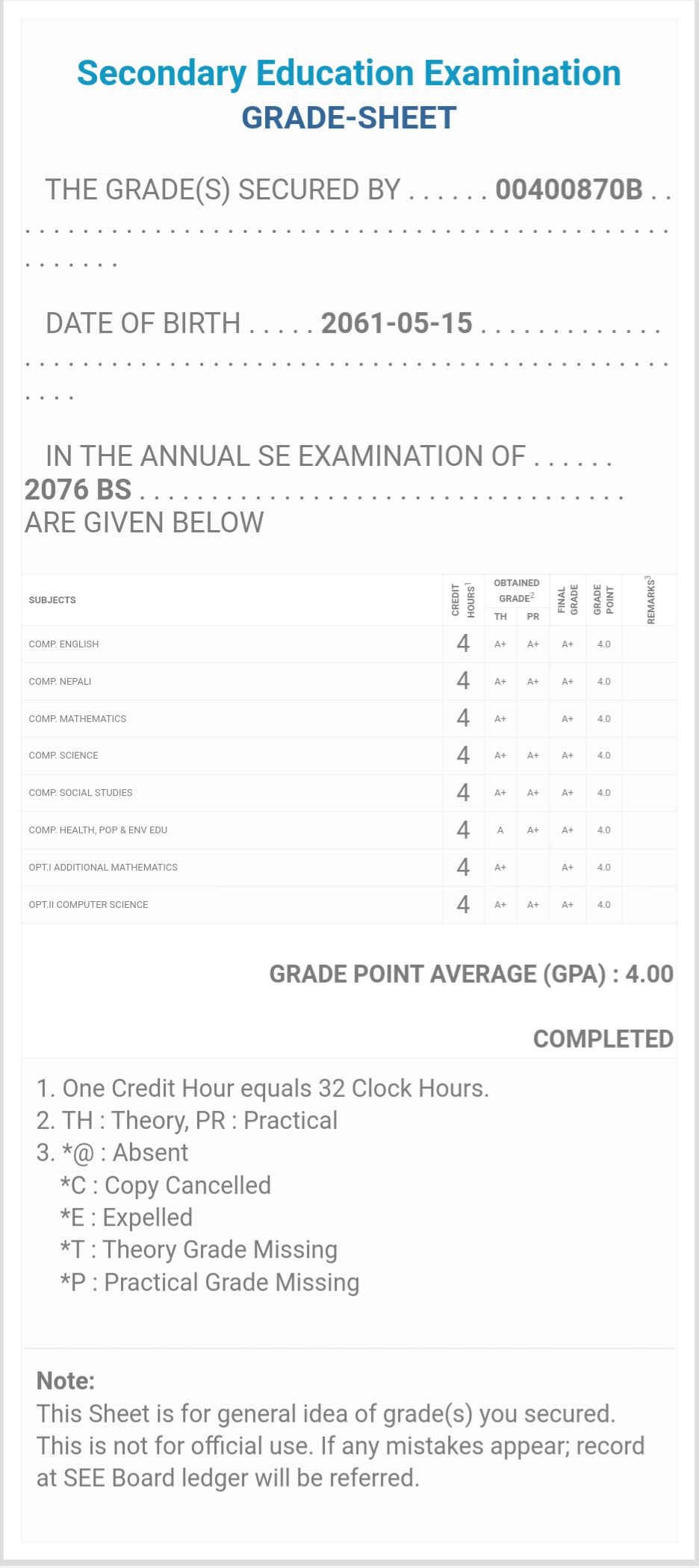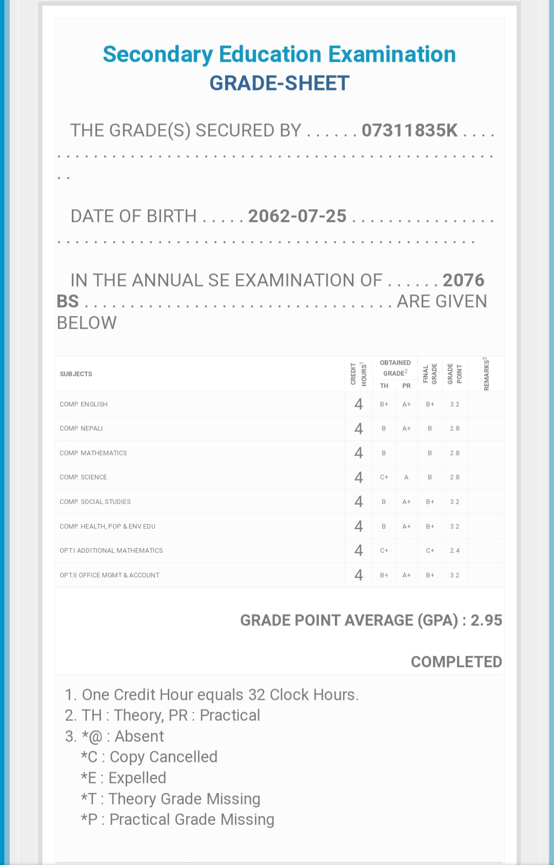 8/26/2020 5:50 PM 159126 Grade sheet SEE [Ritika].jpg-0.jpeg